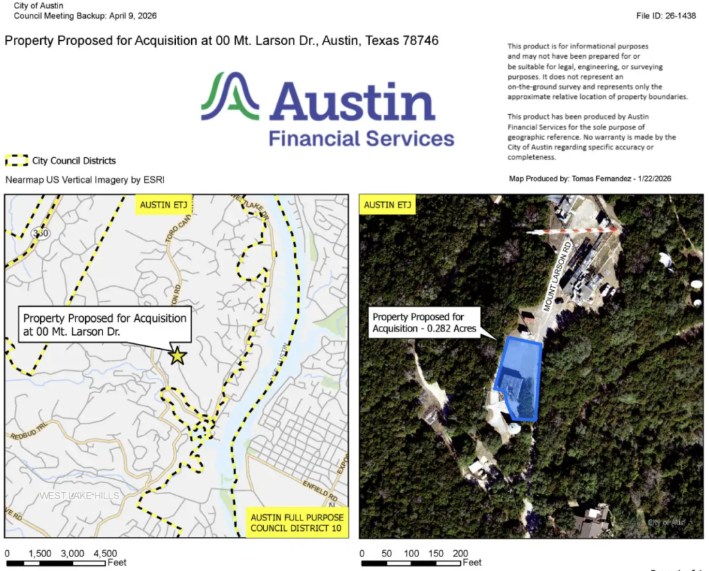 Austin City Council recently approved using eminent domain to acquire land for a new public safety communications tower. This decision follows failed negotiations with the current property owner, NW Communications of Austin Inc., a media entity for FOX 7 Austin. The 0.28-acre site sits in the hills above Lake Austin on Mount Larson Road, where multiple other broadcast towers already exist.